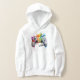 Brightly coloured gaming controller designed over a white sweatshirt, for all gaming enthusiasts.