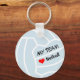 Netball ball design key ring with custom colour and team name. Personalised Netball gift ideas.
