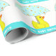 Cute baby boy or baby girl gift wrap or baby shower decoration idea featuring cute rubber duck with an umbrella illustration. To customise, edit text to add newborn's name.