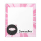 For lovers of all things ninja, this design features an adorable cartoon pig dressed in a black ninja outfit with only the pig's ears, eyes, nose and trotters visible. The border of the notepad shows a starburst pattern in shades of pink. Customise the text to create a personalised notepad for the ninja lover. sgb01