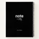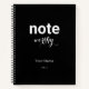 Personalised Note worthy spiral notebook. Black with plain and script text.