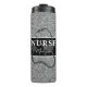 Enjoy your beverage from this Personalised Nurse Black Silver Glitter Script Thermal Tumbler. It is a modern design with the trendy silver faux glitter and a black stripe on the centre. The front has a grey stethoscope silhouette with "NURSE" followed by personalised name in trendy white hand lettered script font. Click personalise template option and enter name.