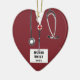 Unique nurse Christmas ornament featuring maroon hospital scrubs and stethoscope design for your favourite nurse, doctor or physician assistant. To personalise edit text to add name and year.