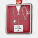 Creative nurse Christmas ornament or nursing school graduation gift featuring unique red hospital scrubs and Swiss army knife. To personalise edit text to add name of your favourite nurse, doctor or physician assistant.