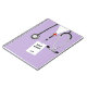 Creative nurse notebook featuring medical themed lavender hospital scrubs and ID badge design. Edit text to add nurse's name and the year.