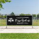 Decorate for a nurse graduation party with this Personalised Nurse Graduate Congratulations Custom Banner. It has a trendy minimalist design on black background, white medical caduceus symbol with "RN." The text is "congratulations nurse graduate" followed by the personalised name. It has modern hand lettered script. CLICK THE PERSONALIZE FURTHER OPTION AND ENTER NAME.