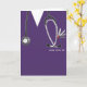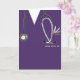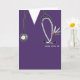 Creative nursing school graduation card template featuring purple hospital scrubs. To personalise edit text to add name of nurse graduate.