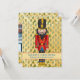 Personalised nutcracker toy soldier photo Christmas greeting card (flat card). Features a nutcracker toy soldier over a green tree and gold star background with the words "Merry Christmas" on the front of the card along with your family name. On the inside of the card, there is a photo template location that you can replace with your own family photo. There is also a spot for your own personalised Christmas greeting on the inside of the card. A unique Xmas design you can personalise with your family's name, photo, and holiday greeting.