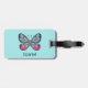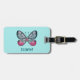Personalised October Teal Glasswing Butterfly Art Luggage Tag