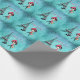 Personalised oh la la chic Paris girl and cat gift wrapping paper featuring the Eiffel tower and string lights on a blue damask background. Some graphics by Origins Digital Curio at www.etsy.com/shop/OriginsDigitalCurio.
