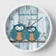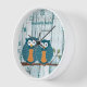 Personalised Old Rustic Aqua Wood Love Bird Owls Wall Clock