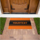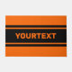 Personalised Orange Black Racing Stripes Door Mat. Makes a great gift for fans of racing stripes.