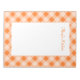 Bright orange gingham decorates this notepad. Personalise this notepad by changing the text to suit your needs. Use this notepad for a kitchen, business, school, etc.....The design is from original art.