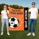 Personalised soccer themed fleece blanket for soccer players when they're not scoring goals on the field, and for their parents to support their kids and stay warm at chilly games! Makes a unique team gift for travel tournaments. Design features a soccer ball customised with the player's uniform number, custom text for the player's first and last name, and modern text for the soccer club team name. Stylish and modern design features sporty varsity jersey lettering and simple horizontal stripes with star accents. The colour scheme of orange, black, and white can be modified to coordinate with your team colours.