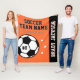 Personalised Orange Soccer Player Name Fleece Blanket