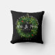 Personalised Our First Christmas Married Newlywed Throw Pillow has an elegant design and makes a great gift idea for a couple with a winter wedding. The background is black and can be customised to any colour. The front has a green wreath with red holly berry leaves on the centre. The text is "our first Christmas as mr and mrs" followed by personalised last name and year. Click personalise template option and follow the prompts.