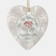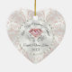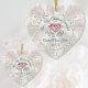 Heart Shaped Personalised Our First Christmas Married Ornament. Stunning Blush and White 1st Christmas Married Ornament for any year. For COLOR, Occasion, Design and Product CHANGES, Call Designer Linda: 239-949-9090 EST. We have THOUSANDS of products for you or Designer Linda can TRANSFER this stunning first Christmas ornament design. Choose from several different shapes of ceramic ornaments or choose from many other styles of couple's first Christmas ornaments. You or Designer Linda can also CHANGE the "Our First Christmas Married" ornament message by Clicking the Personalised Button then "Click to customise further" LINK.