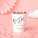 These custom engagement party cups feature bold script with your names and date in clean black on white. Designed for modern minimalist celebrations, they pair beautifully with champagne bars and neutral party decor. Perfect for contemporary couples planning a relaxed but elevated gathering.
