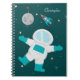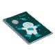 This cute boy's personalised notebook has an out of this world space theme! The background has a dark teal colour with lots of yellow, white, and grey stars in the background. There is an astronaut on the bottom with a moon with a flag at the top. To the right of the moon, there is a rocket ship. On the top right, you can easily customise the name with your own.