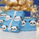Personalised Panda Bear Kawaii Birthday Boys Blue Wrapping Paper