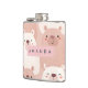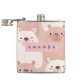 The flask itself is fine. It’s a cheap flask, obviously bought in bulk, however am prepared to overlook that. Given that it is a personalized item, I would have liked to have seen gift boxing instead of the generic packaging. Terrible printing, and/or quality. It’s a cheap, tacky vinyl. It is not cut straight and is also applied in a way that it is overhanging the bottom, causing the glue to catch on items and it will eventually roll and tear, damaging the wrap.