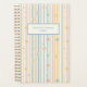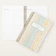 Pretty pastel colours of yellow, blue, green and pink with a repeating flowers and stripes pattern on this yealy planner. Personalise it with 2 lines of text. Available in soft and hard cover and in two sizes.