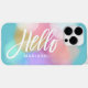 Pretty pastel paint splotches in pink, peach, lilac, aqua, gold, blue and white are scattered across this abstract stylish design that features "Hello" text in modern brush script typography. Personalise with your name or other desired text for a case that is uniquely you.