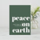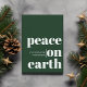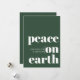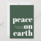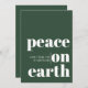 The front of the card features the iconic message "Peace on Earth" in a minimalist, modern font against a deep and inviting dark green background. The harmonious contrast creates a stylish and festive look that perfectly embodies the spirit of the holidays. Customise the card with your personal message or family name to add a personal touch.