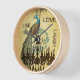 Vintage Peacock Love Bird Chandelier Custom Wall Clock - Live, Love, Laugh Much - or change to whatever you like.