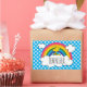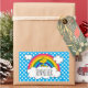 Personalise this super cute design with Woodstock sitting on a cloud in front of a colourful rainbow.