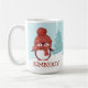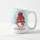 A cute penguin over a snowy background adds a whimsical touch to this Christmas mug.