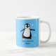 A fun, personalised gift with a cute penguin illustration. blue with white snow flakes surround this adorable mug.