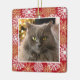 This Christmas ornament allows you to add a custom photo of your pet along with a background of festive winter snowflakes on a red background. Celebrate your pet's first Christmas or memorialise them forever with this lovely ornament.