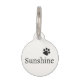 Simple design in black and white with your pet's name and address, your phone number or text. And a matching paw print.