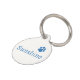 Simple design in blue and white with your pet's name and address, your phone number or text. And a matching paw print.
