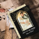 Impress your loved ones with a stunning elegant Gold Islamic-themed eid card that showcases an exquisite vintage personalised photo of a newlywed couple and elegant calligraphy of the word ' Happy first eid Together transform this user-friendly Personalised phto eid greeting card template into a truly unique greeting by effortlessly personalising it with your photo and names.