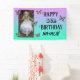 Happy Birthday Banner with your own custom photo, name and age on it. Cute for kid's birthday! For boy or girl. Purple and teal with pretty butterflies. Cute for any girl's birthday party.