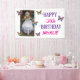 Happy Birthday Banner with your own custom photo, name and age on it. Cute for kid's birthday! For boy or girl. Purple and teal pretty butterflies. Cute for any girl's birthday party.