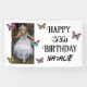Happy Birthday Banner with your own custom photo, name and age on it. Cute for kid's birthday! For boy or girl. Purple and teal pretty butterflies. Cute for any girl's birthday party.