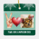 This ceramic ornament is perfect way to celebrate the warmth and magic of the holiday season featuring beautiful snowflakes to capture the essence of winter's beauty. Featuring watercolor peace and love designs with the photo of your choosing makes this ornament a timeless keepsake that will be cherished for years to come. The personalised touch allows you to change the words or message, making it a truly unique piece for your Christmas tree. Whether you're commemorating a special moment from the year or simply spreading festive cheer, this ornament adds a sophisticated and heartfelt touch to your holiday decor. Ready for gift-giving or hanging on your tree. Embrace the spirit of the season and let this elegant ornament serve as a reminder of the joy and love that the holidays bring.