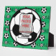 Create a unique soccer gift with our easy to personalise soccer ball Design. Just add your favourite photograph of your young budding soccer star and name in the templates. Design features a 3d effect soccer ball on a green striped soccer pitch with footballs and the words goal. If you require assistance in creating your soccer wall clock please contact us via our store.