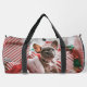 Personalised Photo and Text cute cool funny large foorball Duffle Bag. Create your own with this black and red template or customise the bag in any colour, any font. Add any photo, logo or graphic design element. No minimum