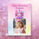 Cute birthday card for a little girl. A cute pink axolotl in a birthday hate and holding balloons. Add your child's photo in the personalise area.