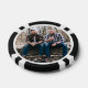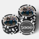 Personalised poker game chips with a custom photo and your own text (family name, established year, etc). This design in black includes the number 5000 but it can be edited with any value amount.