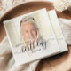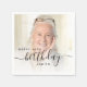 Modern birthday party napkins featuring a custom photo. Easily replace the sample image with a photo of the guest of honour. The word "birthday" appears in elegant black handwriting script. Personalise the text with the name and birthday year in black sans serif font. A white gradient overlay helps make the text pop.
