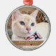 Celebrate your kitten's First Christmas with a personalised metal tree ornament designed with a photo of your cat! Your cat's name is below the image, along with the text "First Christmas" and this years date, 2023. The text is set in white on a light brown background edged with a thin white border, with a tiny black paw print for added fun. Upload a picture of your pet and create a keepsake for your kitty's First Christmas with you! #catsfirstchristmas #firstchristmas2023