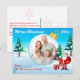 This fun personalised post card would be an economical way to send Christmas holiday greetings to all your family and friends. Customise the text to say what you want and upload a square shaped digital photo into the glass look ornament. The festive look is complete with a snow covered background scene, evergreen trees laden with snow, Santa gesturing to the family photo with a bag of gifts on his shoulder, and there's even a fun cartoon reindeer on the back, along with red snowflakes and green stitching. If you have any questions, or need any changes, email niteowlstudio@gmail.com.