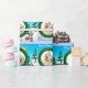This festive and fun whimsical photo Christmas ornament wrapping paper has a green and gold round glass look ornament frame for you to add your own SQUARE digital family photo to. The ornament sits on a winter background scene of evergreen trees and snow covered hills. There is also a reindeer in a Santa suit and a red wrapped gift sitting at his feet. If you need any matching items, or if you need assistance or changes, please email niteowlstudio@gmail.com.