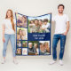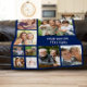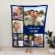 A personalised photo collage keepsake blue blanket for that perfect gift. Customise with nine photos of family, pets, memories, in memory of a loved one, special occassions, your photography, etc. and add one or two lines of text in simple white typography.