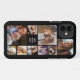 Personalised photo collage iphone case featuring a black background, 9 pictures of family, friends, and pets, plus a simple text template.